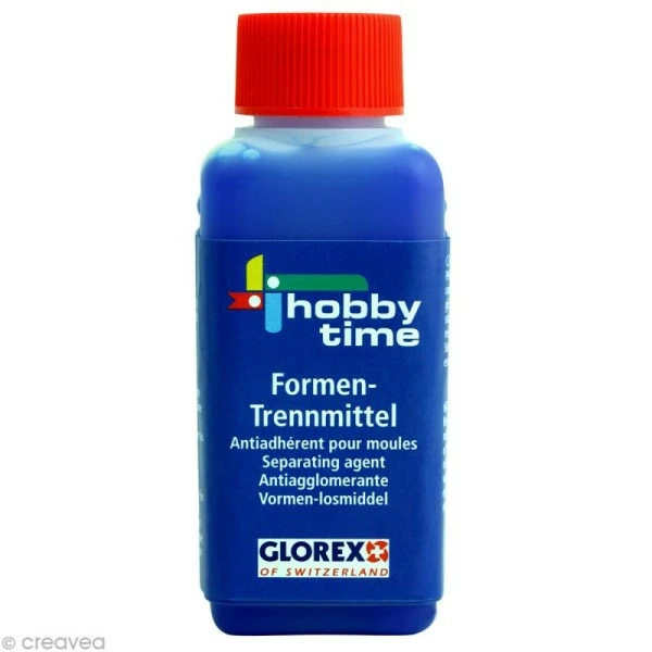 Anti-adhérent pour moules Hobby Time, by Glorex, pour éviter que les moules soient agressés par les substances contenues dans les résines. Ce liquide de démoulage de 100 ml est soluble dans l’eau, si bien que les résidus sur les parois du moule peuvent simplement être rincées à l’eau.