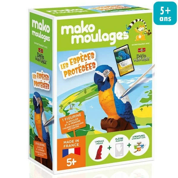 Ce coffret moulage Espèces protégées qui vous permettra de réaliser une jolie figurine en plâtre à mouler et à décorer grâce au moule chat en latex et aux mini pots de peinture inclus.